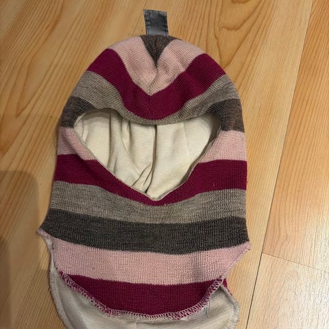 Varm vinterlue i str 51. Ull utvendig og bomullsfor inni.