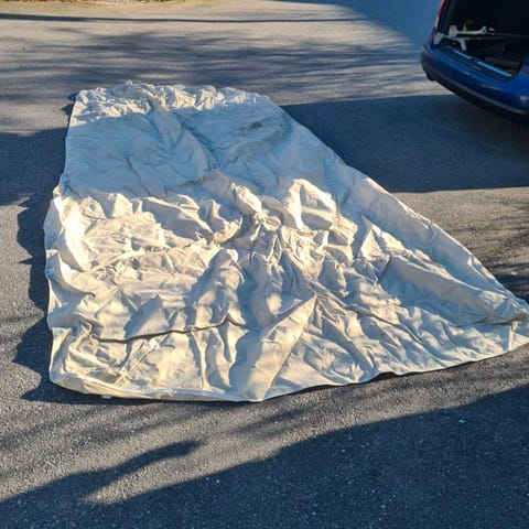 Har en ekstra kalesje for akterdekk til Princess 42 fly . Fulgte med båten når vi kjøpte den. Fremstår som hel og fin. Lagret tørt