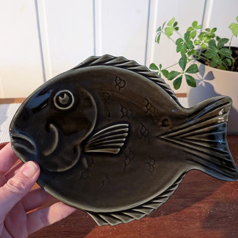 Flott gammelt/antikt Sarreguemines fiskefat, fat, fisk, selges
