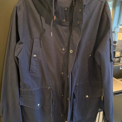 Ubrukt flott mørk blå parkas : Selected HOMME Jeans med snøring i livet og nede💪 Ca 90 cm lang( uten hette) Kan sendes mot porto