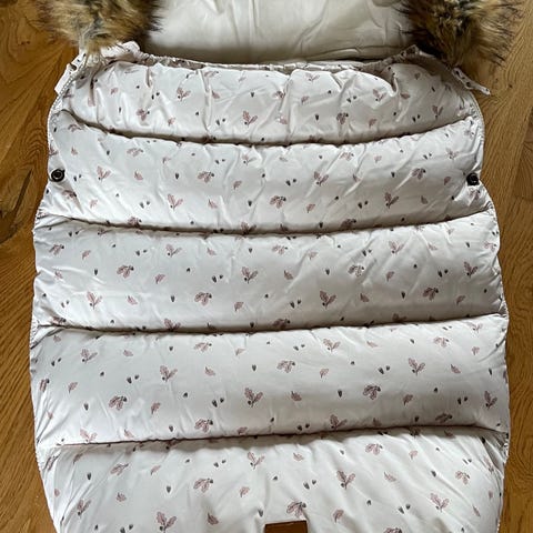 Varm og god vognpose i ull. Puster godt og kan derfor brukes nesten hele året. Åpnes enkelt med glidelås.