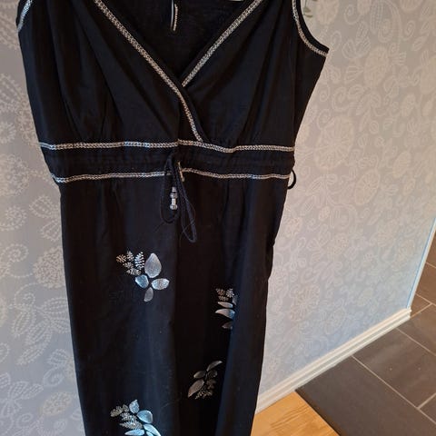 Kjolen er i L. Sort med gulldetaljer på overdel