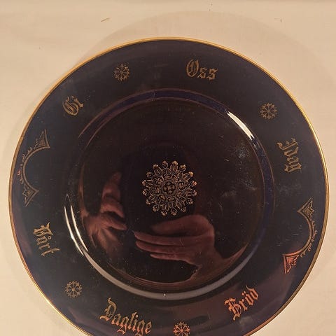 Haner og høner på fat og tallerkener