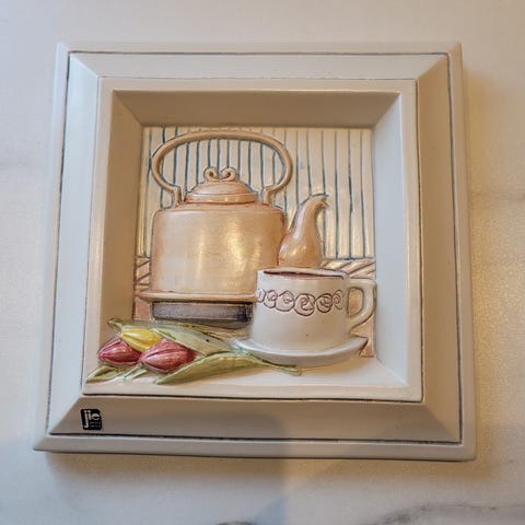 Håndlaget keramisk bilde. Diameter 20 cm. Kan henges på veggen.