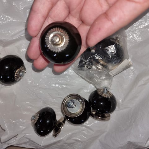 2 knotter / håndtak i porselen. Perfekt til skap og kommode. Ubrukt. Kan sendes mot 69kr i sporbar PostNord (Vipps), eller bruk fiks ferdig.