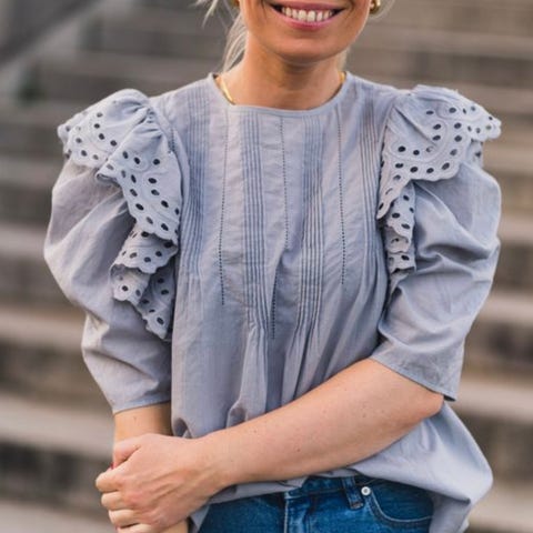 Pent brukt blondetopp fra Pia Tjelta (Saga).
