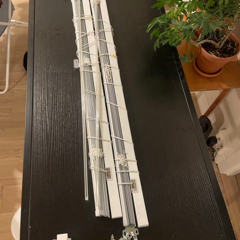 2 sølvfarget persiennere selges samlet for 50,- pr stk