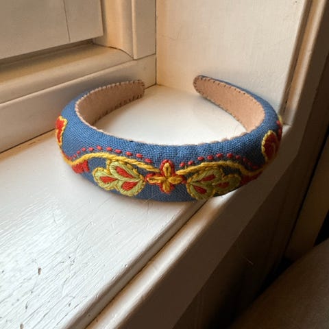 Nydelig orange håndbrodert belte fra 7 Days. Løfter antrekket til nye høyder. Like fint til jeans som til kjole.