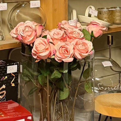 Selger falske blomster med vase.