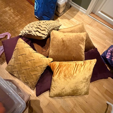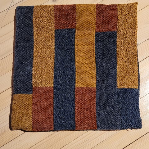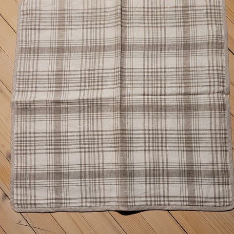Putetrekk I tynn lin med broderier. Under linen er det et forstoff med vatt.