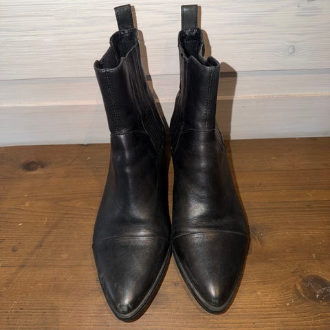 Ekte skinn sko i størrelse 39. Kostet 2400kr nye. La på ny såle på helen i våres for 300kr. Så de er veldig gode å gå med selv når det er glatt☺️