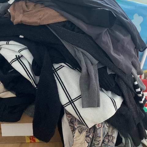 Selger jakker/cardigans, gensere, kjoler, tskjorter, shortser og skjørt. 300kr per pose. Sender gjerne om kjøper betaler frakt. Da er det fem valgfrie plagg til 200kr. Jeg sender gjerne flere bilder av aktuelle klær om det er ønskelig.