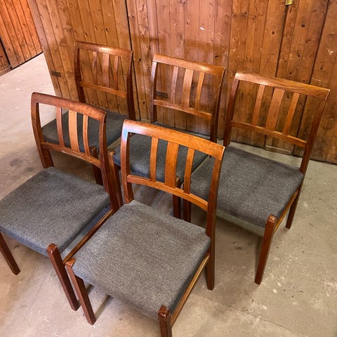 Teak med fint grått mønstrete trekk i både sete og rygg.