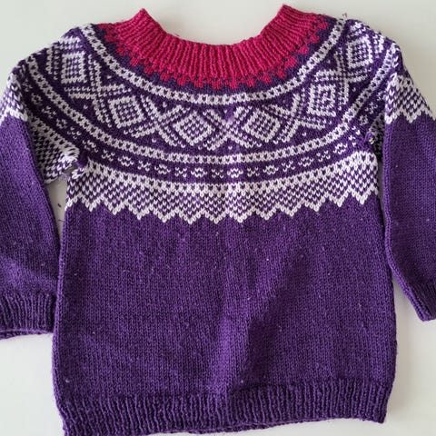 Nydelig hjemmestrikket Mariusgenser i str. 2-4 år