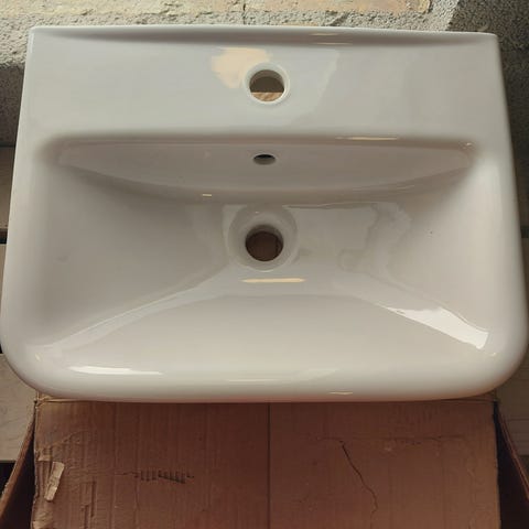 Bathco toppmontert servant med blandebatteri og pop up ventil. Diameter 41 cm, høyde 15 cm, dybde fra bakkant til front er 50 cm. Veiledende pris på servant alene er 2.490 kr. Selges samlet.