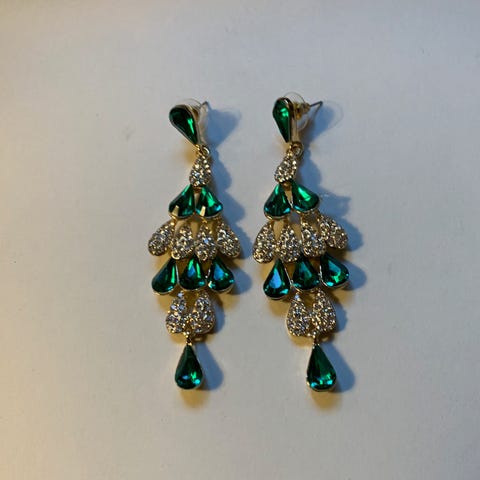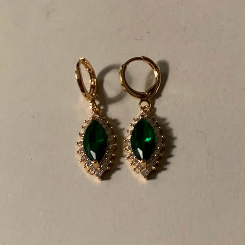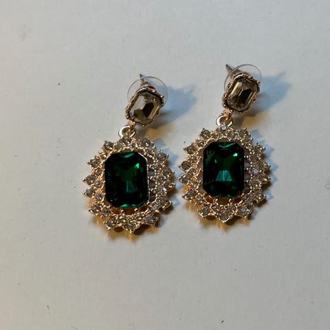 Retro øredobber med grønn steiner