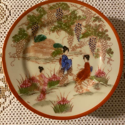 Nydelig håndmalt japansk service selges. Har kun de enheter som vises på bildet.