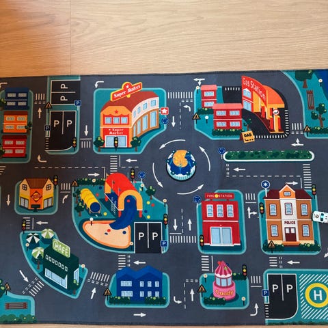 Dette er favorit hos mitt barnebarn. Bilder er av vår som vi bruker mye. De jeg selger er nye. Kjøpte fler som skulle bli gave, men selges nå da det tar plass. Praktisk å oppbevare når den ikke er i bruk, da den kan brettes eller rulles. Kan hentes eller sendes. Sender kun som norgespakke. Prisen er fast.