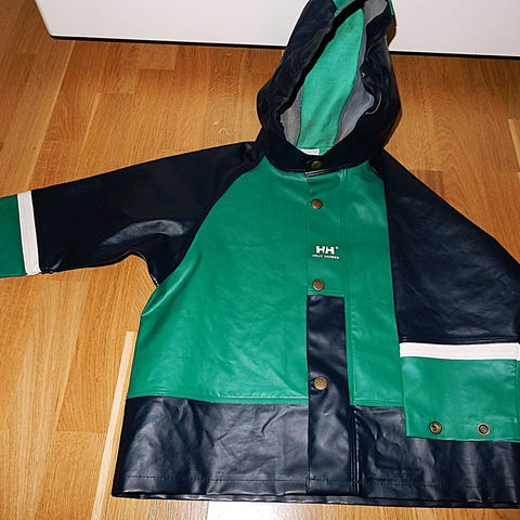 Retro Helly Hansen oljehyre-jakke i god stand. Hette med mulighet for stramming. Sveisede sømmer.