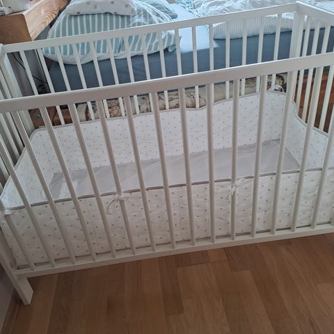 Seles Gulliver sprinkelseng . 60x 120 cm. Pent brukt av et barn. Sengen er pakket sammen derfor, her er eksempel på hvordan sengen ser ut. Sengen har lys bjørk farge . Selges med Sprinkelbeskytter og madrass .