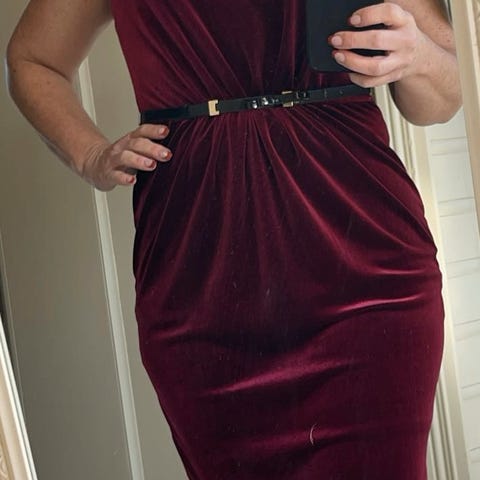 Tysk merke som er kjemt for gode kjole fasong og kvalitet, fin fast strikk og strech. Denne er god i str. å finnes kun 1 av Norge . Mål. 92 rundt bysten, 96 cm over hoftene, 95 cm fra skulder og ned. Målene er uten å strekke ut kjolen. Denne er fin til en god str.40, slank 42 i str. Fin å putte under ulike jakker eller putte noe inni. Grunnen til att jeg skriver str. M og L er fordi str. M er str.38/40 og L er str. 40/42 og har man litt høyde kan man fort trekke 42 i str. Etter mange års erfaring fra klesbransjen. Mine mål er 94cm rundt byste, 111cm rundt hofte/rumpe, 91 cm i livet og jeg bruker str.40 og har mye rumpe/lår. Jeg har tatt en opprydding 😅 Prisen er ferdig prutet.