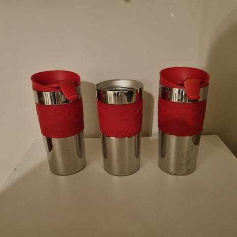 Selger denne termokoppen. Den er praktisk til å holde drikker varme eller kalde.