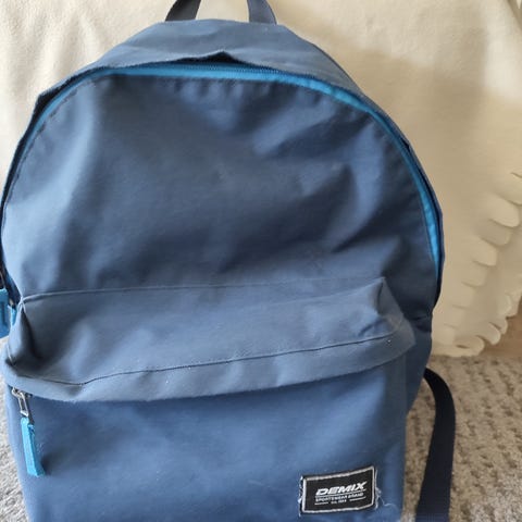 Svart liten dameryggsekk med et lite rom med glidelås inni og et rom med glidelås på forsiden,samt et på baksiden.