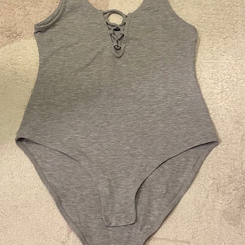 Stilig med knepping nede og åpning ved bryst. Melange grå i fargen.
