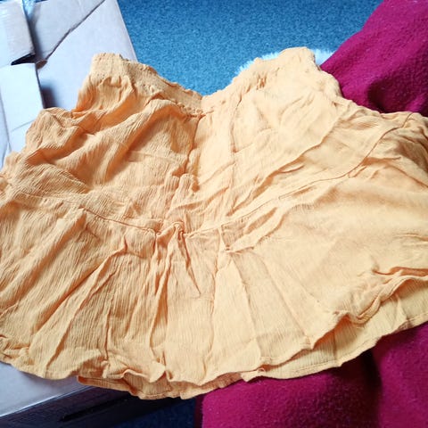 Kun prøvd en gang og vasket en gang. Toppen har korte ermer og er kort i livet. Vid hals. Fin stand og sprek farge.