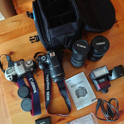 Canon EOS 5D Mark 4 speilreflekskamera hus i svart. Fullformat DSLR-kamera med innebygd vertikalgrep/batterigrep for bedre ergonomi ved både liggende og stående fotografering. Kamerahuset har stor LCD-skjerm på baksiden, optisk søker og oversiktsdisplay på toppen for rask tilgang til innstillinger. Passer Canon EF-objektiver (ikke EF-S). Egnet til foto og video der man ønsker et robust kamerahus med mange manuelle innstillingsmuligheter.