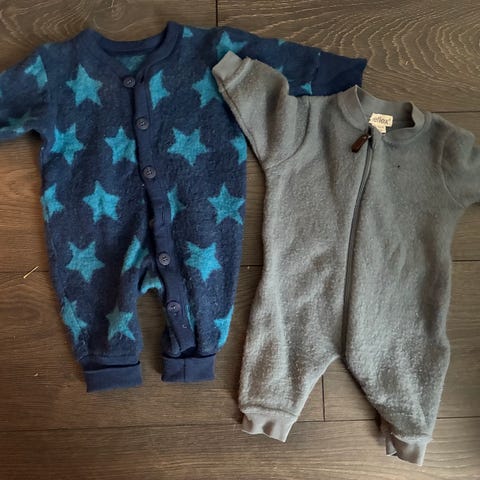 Myke og behagelige heldresser til baby. Pent brukt, ingen flekker.