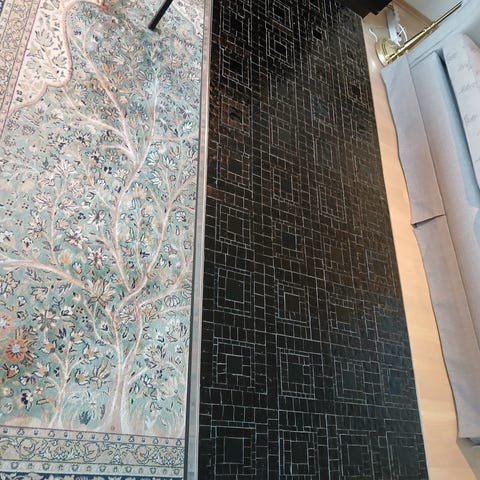 Et kjempefint bord i mangotre. Det er nærmest ubrukt og ble kjøpt på Kid for kr 1600 i 2021.