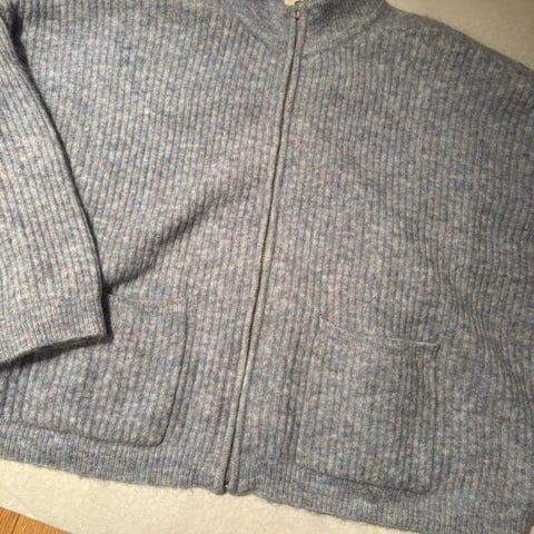 Den er deilig og myk og stikker eller klør ikke. Oversize look. Vid og litt lang på armene. Jeg elsker stilen på disse jakkene.