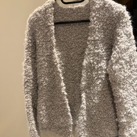 Veldig fin cardigan. Lappen er klippt av så vet ikke hvilken merke eller hvilken størrelse men vil si at den passer en small/medium. Kan gjerne sende med fiks ferdig :)