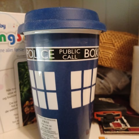 7 cm høg (espressokopp?) liten kopp, Dr. Who «merch». Kan sendast. I super stand, ser ubrukt ut
