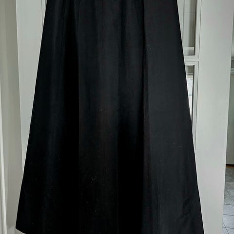 Glidelås bak og litt strikk i hver av sidene på bakstykket i linningen.~ 9 cm på hver side.