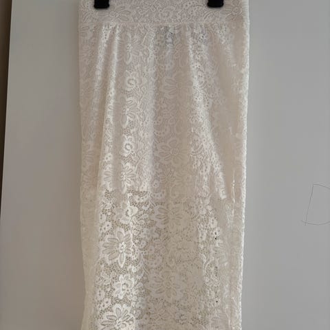 Står ikke str i skjørtet, men tipper M. Har målt, og skjørtet er 70cm rundt livet.