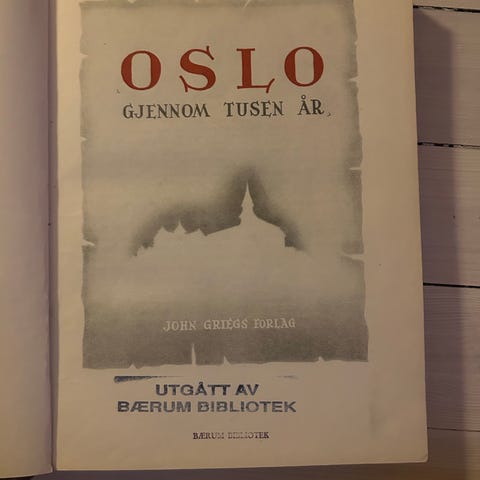 «Oslo gjennom tusen år» utgitt av Grieg forlag, Bergen i 1944