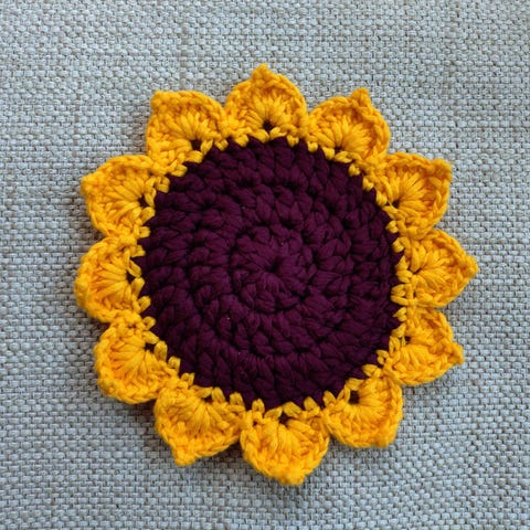Håndlaget bordskåner i ull «byBeritV». «BLOMST» 21 cm i diameter. Farge petrol. Kan vaskes på ullprogram og dampes lett med klede i mellom