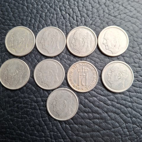 7 stk 1 krone fra 1972 til 1983