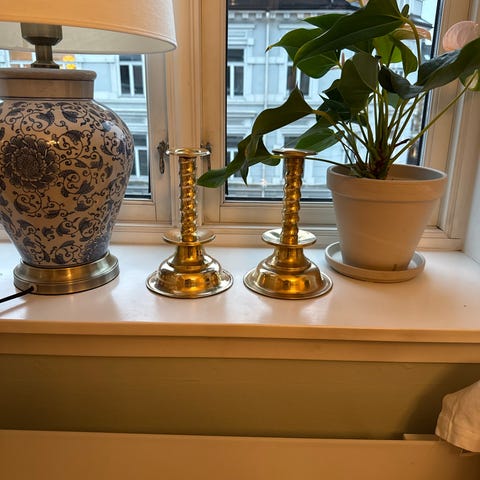 1 stk blomstervase blank d 10 cm h 16,5 cm kr 100,-