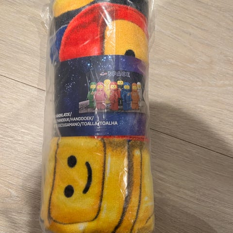 Helt nytt håndkle fra lego med legomotiv. Ikke åpnet, se bilde 2. Første bilde er for å vise motivet og er av et annet likt håndkle.