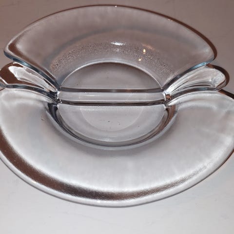 Gammel skål eller askebeger i glass, bredde 15 cm. Vekt: 473 gram.