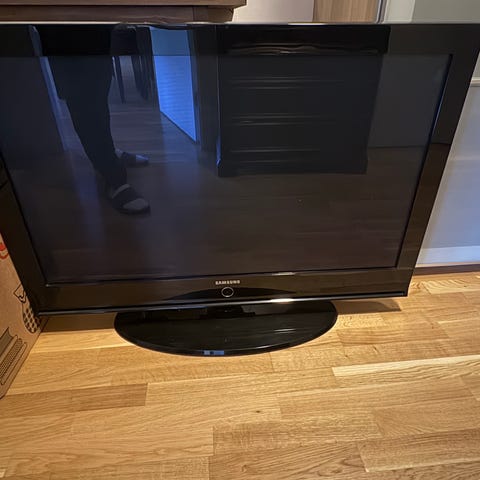 Eldre 40 tommer fra Samsung. Mangler fjernkontroll og fot, veggfeste medfølger.