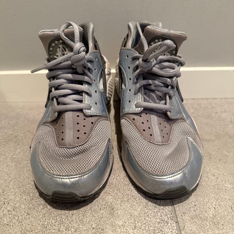 Svært lite brukte, noen få bruksmerker, lysegrå NIKE AIR HUARACHE joggesko i str 38,5 selges da de dessverre er litt for små🥲. Passer mer en 37,5. Kjøpt på NIKE STORE i Manhattan/New York.