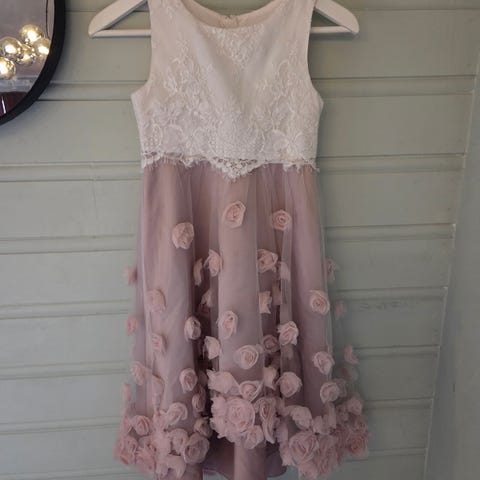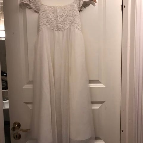 Pen penkjole med stropper og fine detaljer. Glidelås og knyting i ryggen.