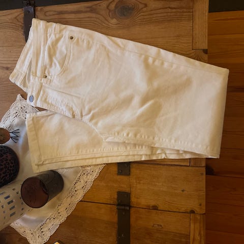 Fin Abbey Denim jeans/ bukse med duse hvite prikker str W26. Veldig pent brukt.
