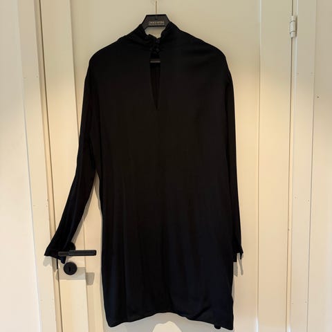 Lett, åpen cardigan i 100% viskose, lenger i front enn bak. Fin over en topp eller kjole:). Anser den som normal i str.
