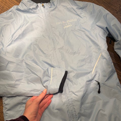 Unik og ubrukt genser fra Asics/ fra maraton/ løp i England med teksten "cancer research uk race for life"