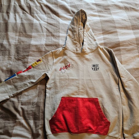 Selger en Sparta Warriors official wear hettegenser i str liten L. Den er grå og sort i fargen, og har en stor frontlomme. Snora til hetta er tatt bort og den er pent brukt. Se bilder for nærmere detaljer.